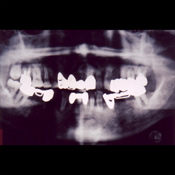 インプラント、人工歯根、上部構造を口の中に装着した時のレントゲン写真です。