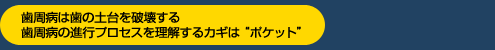 歯肉溝にプラークがたまり、歯肉が炎症ではれて、歯肉ポケットになりました。まだ歯根膜や歯槽骨は破壊されていません。 |