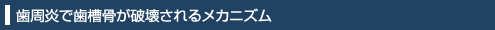 | 歯周病菌をたおすのは容易ではなく、長くたたかいが続きます。リンパ球やマクロファージなどの免疫細胞は、危険な合戦場から骨を遠ざけ、守るため破骨細胞を活性化させ歯槽骨を吸収、破壊します。また、歯周病菌が出す内毒素(エンドトキシン)も歯槽骨の吸収、破壊をひきおこします。 |